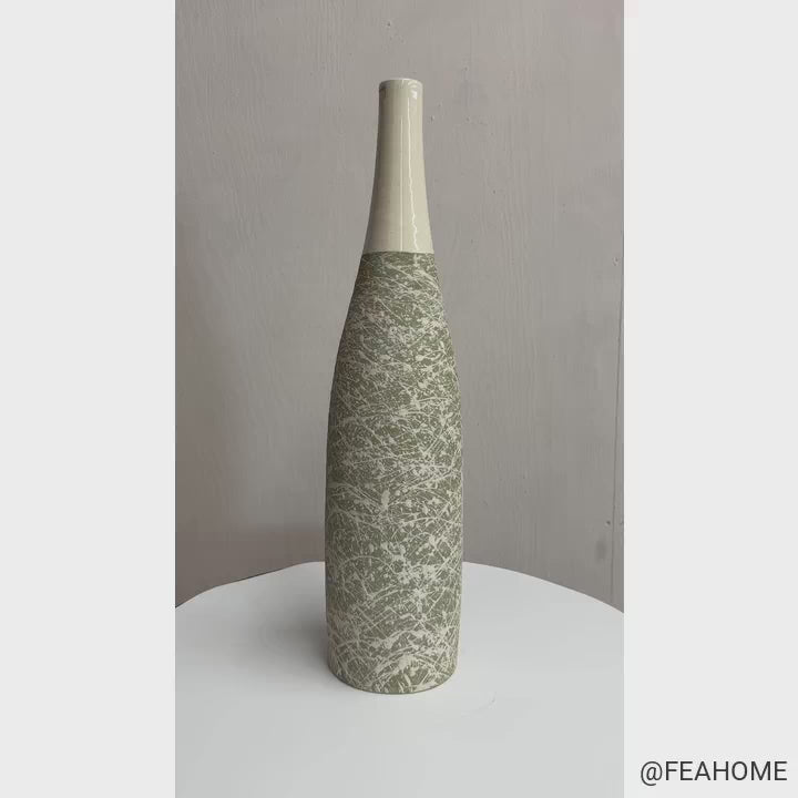 Ceramic Vase with Green & White Splatter Design & White Neck